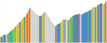 The climb starts with a gentle gradient of 2.9% and goes through a beautiful canyon named Gorges des Gâts.