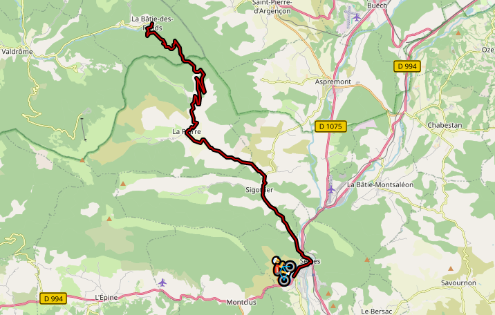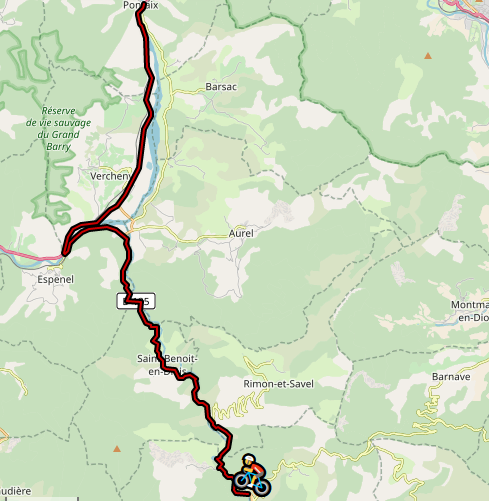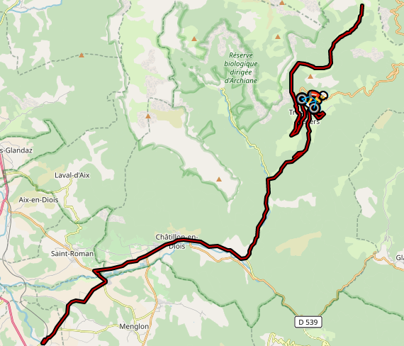12/28/2023 A new tour, covering about 70 kilometres and 1550 metres of altitude difference. We cycle to the source of the river Drôme, which gives its name to the Drôme department in the French Pre-Alps.