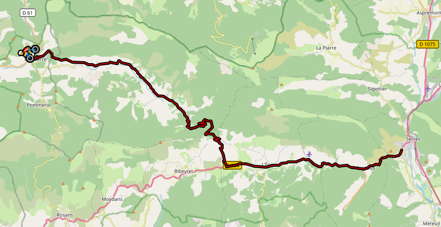 The third video of this tour starts in Serres with its southern Provençal flair and takes us back to the Drôme Department via the Col de Carabès. With almost 600 climbing meters and an average slope of 5,2%, the ascent is somewhat harder than the other two and requires a good fitness level.
