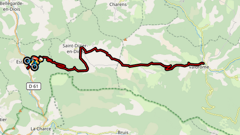 With about 500 climbing meters and moderate slope percentages, the ascent is not too difficult. The ride offers nice views of the pretty Diois landscapes.