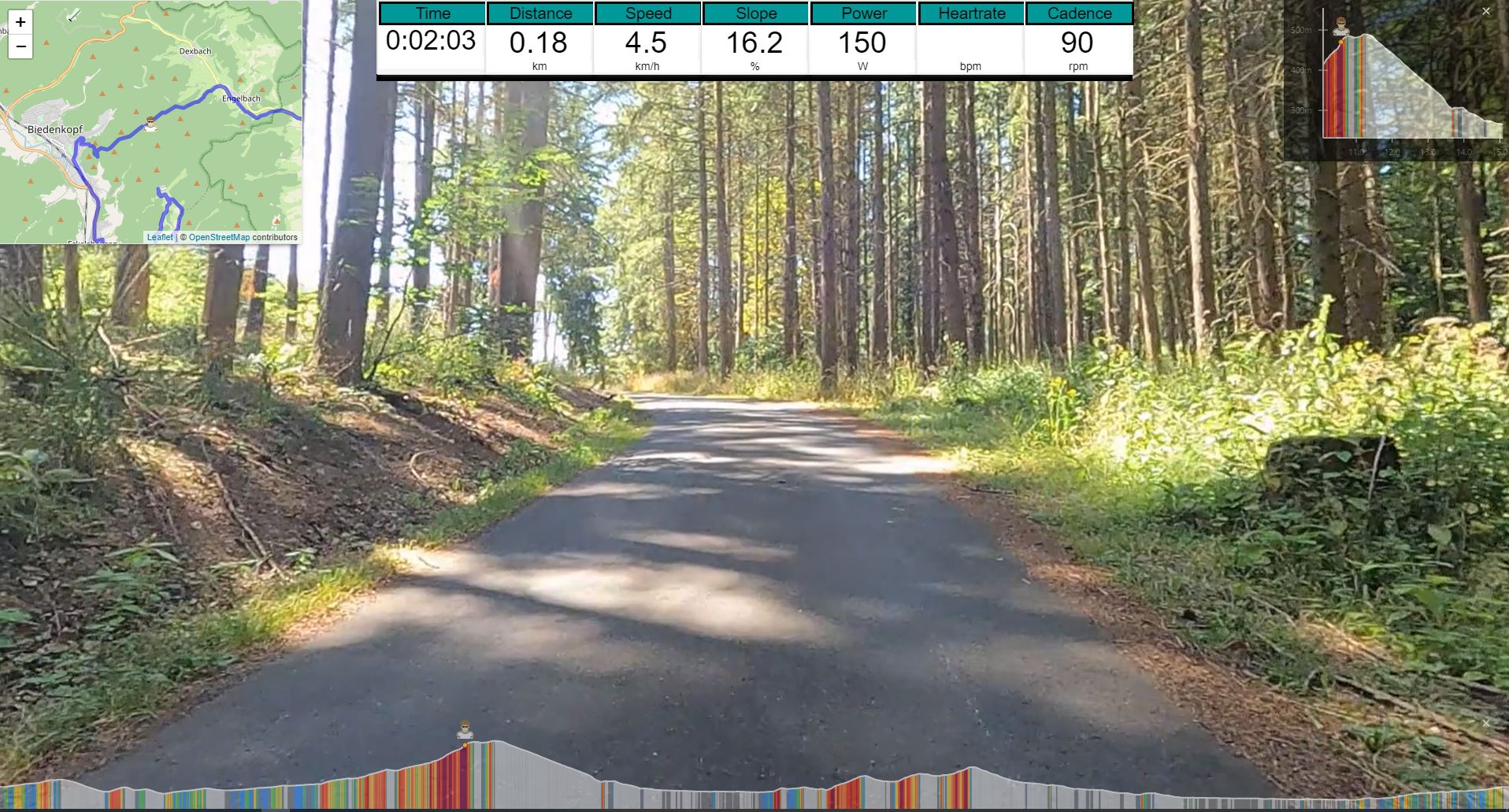 Every now and then, I produce indoor cycling videos for my own use with Incyclist, that's my favourite indoor cycling application. I am happy to share them on this page. All files are free for your own non-commercial use. They can be downloaded, unzipped and then imported using Incyclist's XML/GPX import function.