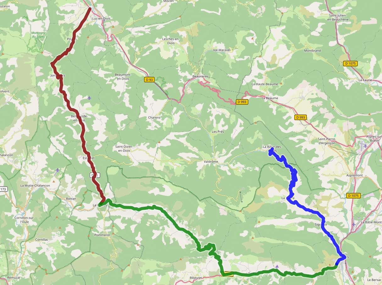 A tour, covering about 70 kilometres and 1550 metres of altitude difference. We cycle to the source of the river Drôme, which gives its name to the Drôme department in the French Pre-Alps.